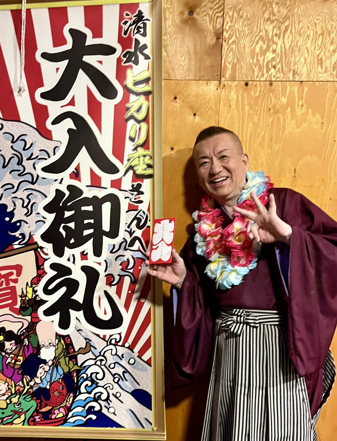 Without waiting for his mandatory retirement, he embarked on managing a mountain hut located at 7.4 stations (3,090m above sea level) on the Gotemba trail of Mt. Fuji. There, as a substitute for dessert after dinner, I performed my rakugo, which led to the annual summer tradition of visiting the mountain hut and holding rakugo performances with short comic stories.